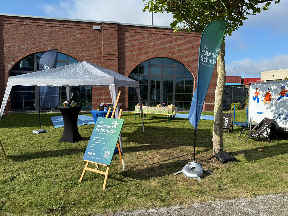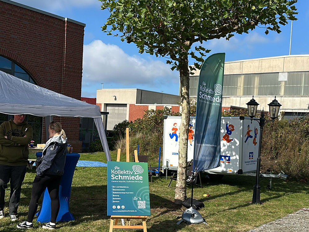 Mitten im bunten Treiben präsentierten sich die KollektivSchmiede und die Kommunikationsbrücke erstmals gemeinsam am Standort und luden zu Austausch und Begegnung ein.